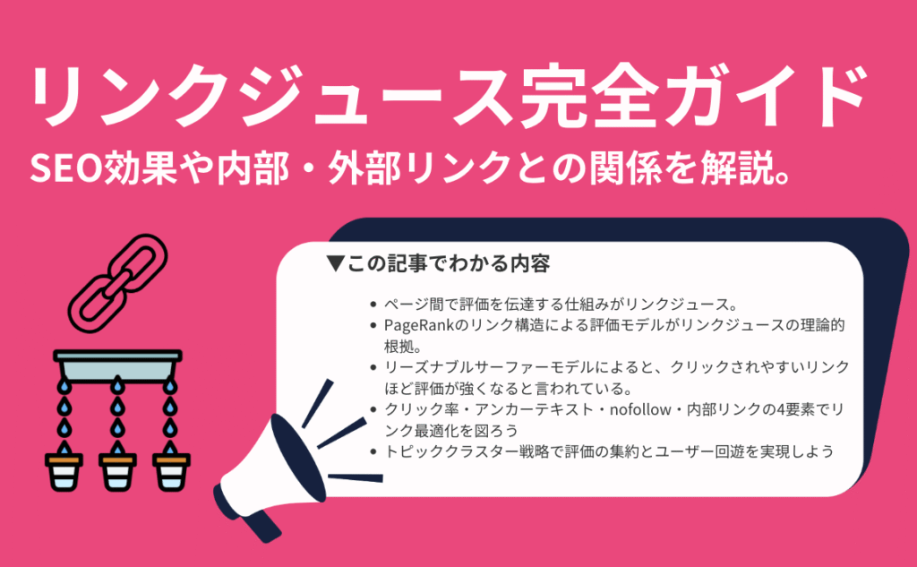 リンクジュース完全ガイド|SEO効果や内部・外部リンクとの関係を解説。