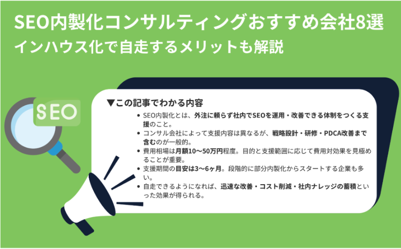 SEO内製化コンサルティングおすすめ会社8選:インハウス化で自走するメリットも解説