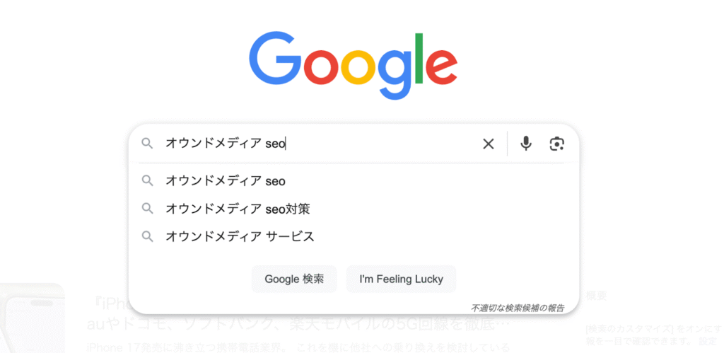 検索窓にキーワードを入力すると自動で表示されるのが「サジェスト」です。
