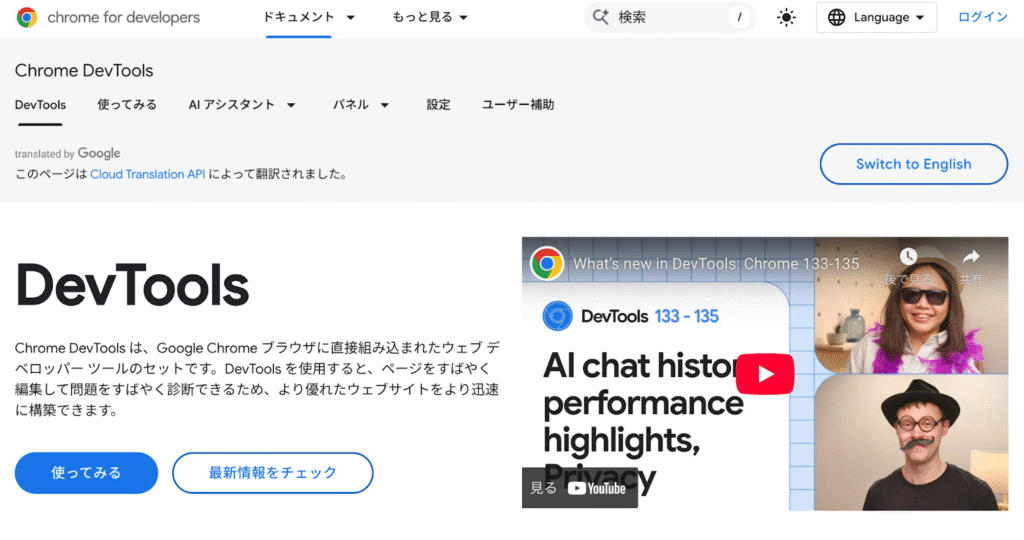 Chrome DevToolsは、Google Chromeに標準搭載されている開発者向けツールです。サイトの読み込み速度、レンダリング、レスポンシブ表示、エラー確認など多角的に内部状態を調査できます。