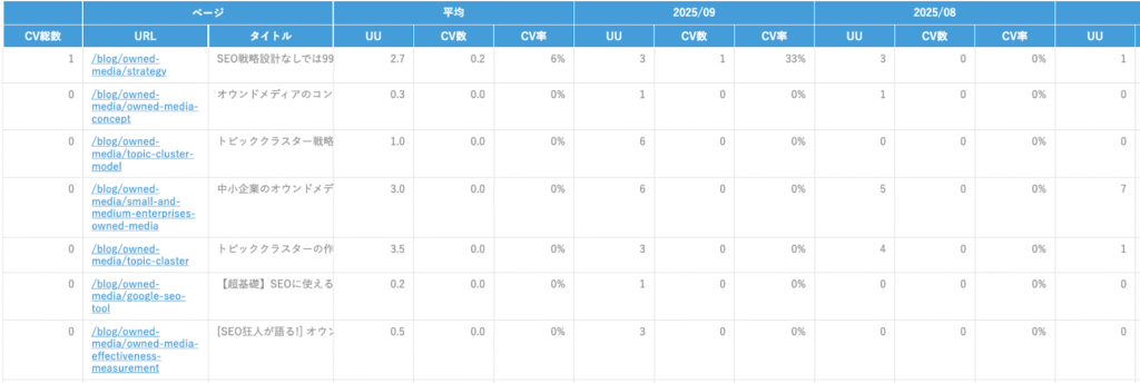 記事制作、リライト、内部リンク改善、CVR改善などの施策と、検索流入やCV率などの指標を紐づけ、目的に対して何を行うのかを明確にしましょう。特に内製では「月ごとに改善テーマを絞る」ことで、負荷を抑えつつ成果を積み上げることが可能になります。