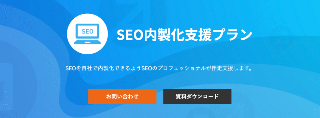 | サービス内容 | SEO内製化支援プラン「オーガニックマーケティング内製化プラン」:社内でSEOを運用できる体制構築のための研修・資料提供・改善指示書提供などを実施。 |