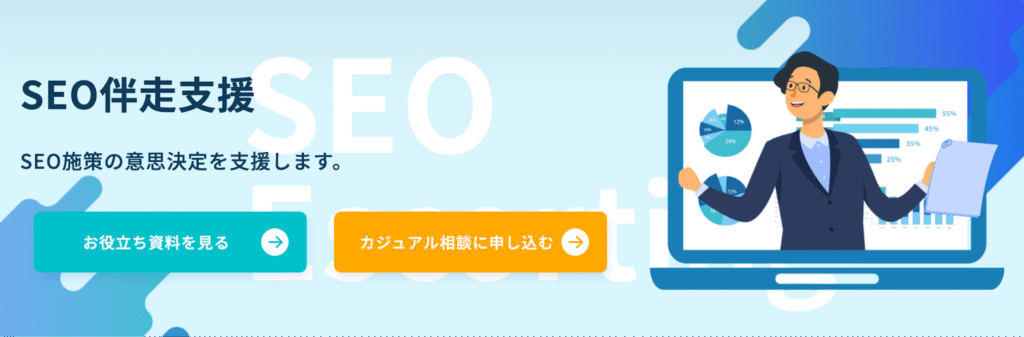 支援を通じて「1人でもSEOを推進できる担当者」を社内に育成できるのが理想です。