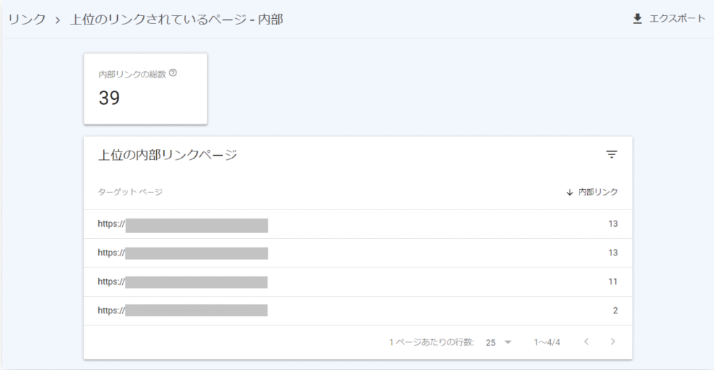 サイト内で特に見せたいページ(例:コンバージョスページ・商品・主要カテゴリなど)には、自然な内部リンクがどれだけ集まっているかを見ます。