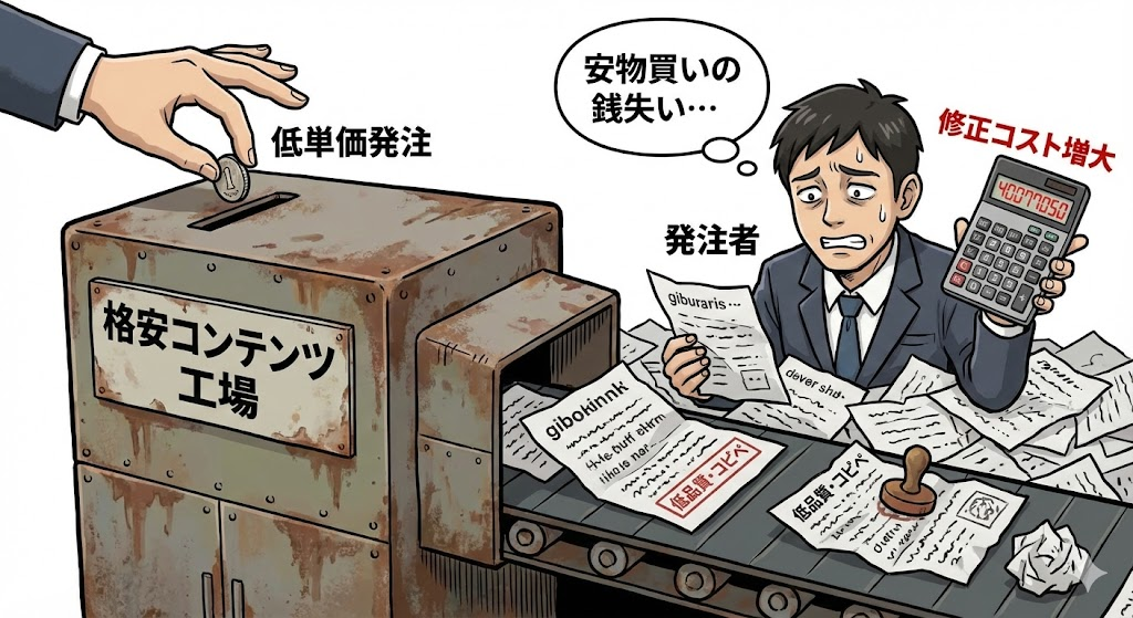 ①安さ優先による品質崩壊(記事単価3,000円帯のリスク)