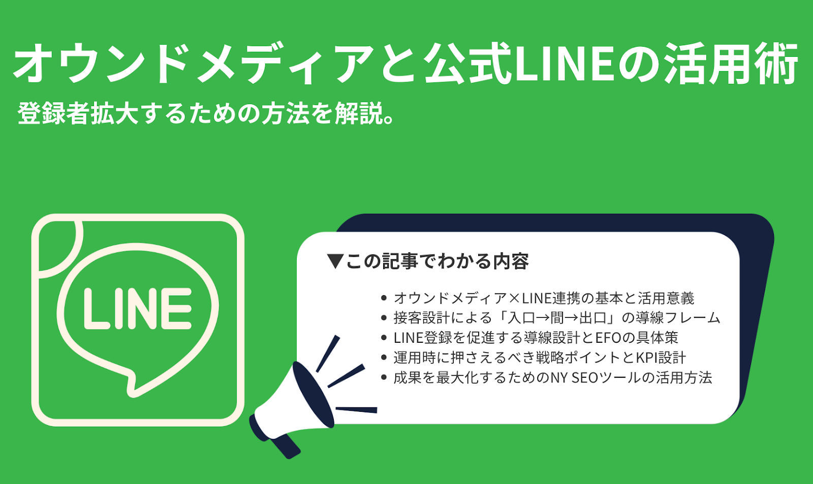 本記事では、オウンドメディアとLINEを併用する意味から、接客導線の基本フレーム、カスタマージャーニーの可視化・興味育成・CTA・EFO(入力フォーム最適化)までの実装、さらにLINEを戦略的に運用するためのKPIや効果測定までを一気通貫で解説します。