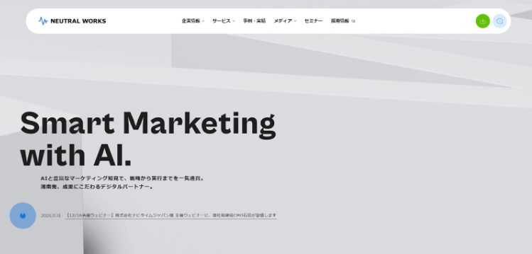 株式会社ニュートラルワークスは、3,000社以上の支援実績に加え、自社メディアを月間数十万PVへ成長させた実戦的なノウハウを持つマーケティング会社です。